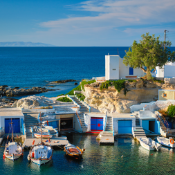 Finally, we ended in Milos, perhaps our favourite. Its surreal, moon-like beaches, such as Sarakiniko, left us in awe. We rented a scooter, zipping between hidden bays and fishing villages like Pollonia.